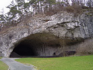 | Obr. : Jeskynní portál jeskyně Kůlna v Moravském krasu, je vysoký 8,5 metru, široký 40 metrů